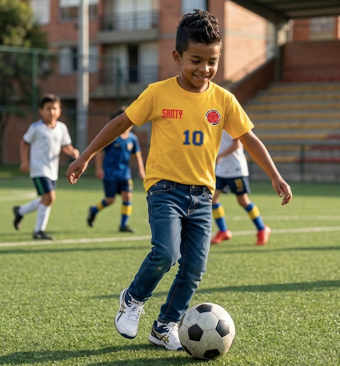Nuestra camiseta de la Selección Colombia personalizada es el regalo perfecto para los pequeños grandes hinchas. No es solo una prenda deportiva; es una T-shirt de estilo urbano diseñada para ofrecer comodidad total mientras apoyan al equipo de sus amores o juegan en el parque con amigos.